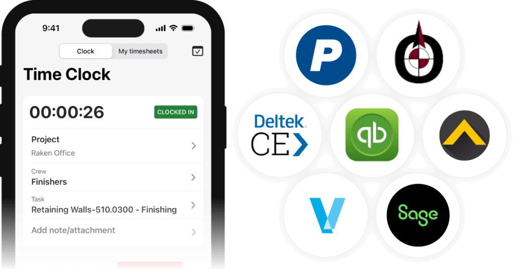 Integrate Raken with your accounting software to eliminate manual data entry and simplify your payroll process.