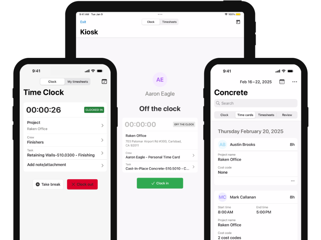Capture time, cost codes, work logs, and more with Raken’s easy-to-use mobile tools.